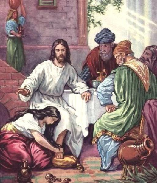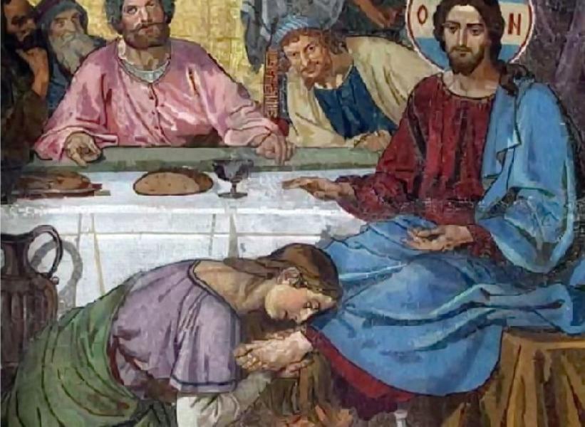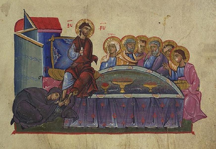 Грішниця, яка помазала Спасителя миром. В Євангелії від Луки є розповідь про те, як в дім, де зупинився Христос, прийшла жінка, яка плакала, обливала його ноги сльозами і мазала миром. Господар дому знав, що жінка була грішницею, тому засумнівався у тому, що Ісус дійсно пророк – інакше він би не дозволив грішниці й наблизитися до себе. Але Христос розповів притчу про те, що потрібно прощати гріхи.