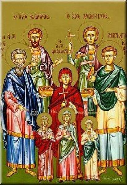 Мучениця Феодотія та троє дітей її. Ця свята вдова жила з трьома малолітніми дітьми за правління імператора-язичника Діоклетіана (284-305 роки від Різдва Христового). Вона була ревною християнкою і перебувала в духовній дружбі зі святою Анастасією Узорішителькою.