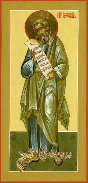 Святой пророк Иезекииль жил в VI веке до Рождества Христова. Родился в городе Сарире, происходил из колена Левиина, был священником и сыном священника Вузия. Во второе нашествие на Иерусалим вавилонского царя Навуходоносора, в 25-летнем возрасте Иезекииль был отведен в Вавилон вместе с царем Иехонией II и многими другими иудеями.