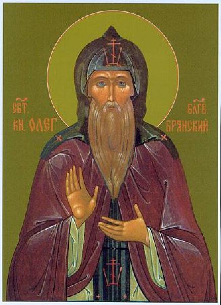 Святой благоверный князь Олег Романович Брянский (в Крещении Леонтий) был внуком святого мученика князя Михаила Черниговского. По летописным источникам известно, что благоверный князь Олег в 1274 году вместе со своим отцом, князем Романом Михайловичем Брянским, участвовал в войне против Литвы. После 1274 года он оставил княжение и принял иноческий постриг с именем Василий в Брянском Петропавловском монастыре, построенном на его средства. В этом монастыре святой благоверный князь скончался строгим подвижником около 1285 года и был погребен в монастырском храме.
