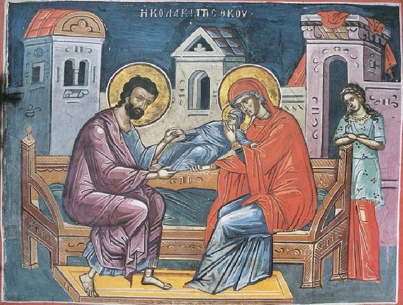 Непоро́чно Бо́гу пожи́вшии, все́х роди́сте Спасе́ние, богому́дрии роди́теле Зижди́теля Ро́ждшия и Бо́га на́шего.